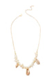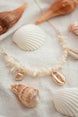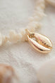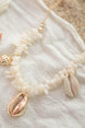 Simplicity and elegance combined into a unique necklace. Three small seashells are surrounded by pieces of other shells for a timeless take on a beach necklace. The dainty gold chain is adjustable so that it fits your neck perfectly. Layer it with longer chains or wear it solo to make a statement.